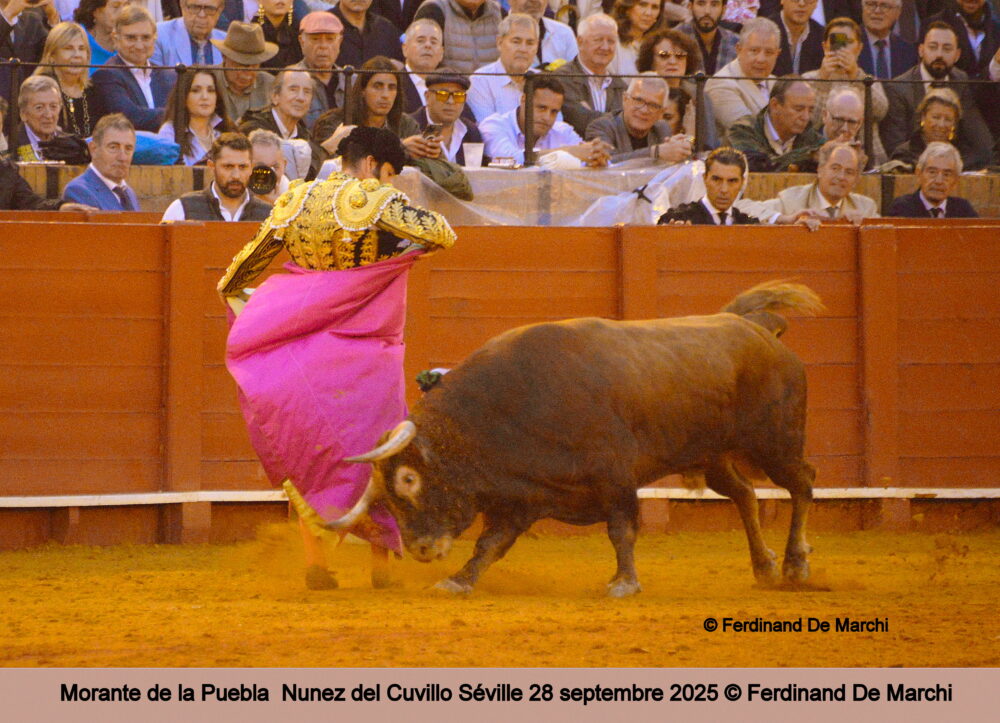 MORANTE DE LA PUEBLA était attendu comme le seigneur de ces lieux, en majesté donc. Sa majesté ne voulut pas combattre son premier toro qui présentait en effet un comportement trouble dès sa sortie, ne voulant aucune passe de cape pour mieux se consacrer au cheval du picador, poussant avec une corne pour faire tournicoter inlassablement la monture. Etrange tercio de pique. Pas de faena donc, une prise de l’épée de vérité dès le départ, à la Curro Romero des grands jours, pour mettre un tiers d’épée concluante. Pas de bronca donc, mais un silence respectueux.