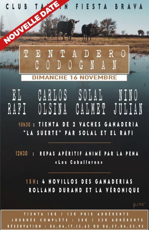 La journée taurine de Codognan est reportée au dimanche 16 novembre…