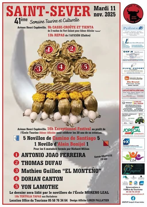 La météo est optimiste. Il n’y a plus de restrictions administratives. Attention l’horaire: 16 heures début du spectacle. Une bonne cause au profit d’Adour Aficion l’école menée par Richard Milian. Suerte à todos.